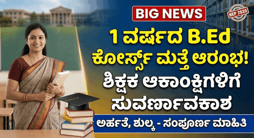 ಭಾರತೀಯ ಶಿಕ್ಷಣ ವ್ಯವಸ್ಥೆಯಲ್ಲಿ ಮಹತ್ವದ ಬದಲಾವಣೆ ತರಲು ಮುಂದಾಗಿರುವ ಕೇಂದ್ರ ಸರ್ಕಾರ, ಶಿಕ್ಷಕರ ತರಬೇತಿ ಪ್ರಕ್ರಿಯೆಯನ್ನು ಸುಲಭಗೊಳಿಸಲು ನಿರ್ಧರಿಸಿದೆ. ಈ ಹಿಂದೆ ಕಡ್ಡಾಯವಾಗಿದ್ದ 2 ವರ್ಷಗಳ ಬಿ.ಎಡ್ ಕೋರ್ಸ್ ಅನೇಕರಿಗೆ ಆರ್ಥಿಕ ಮತ್ತು ಸಮಯದ ದೃಷ್ಟಿಯಿಂದ ಹೊರೆಯಾಗಿತ್ತು. ಈಗ 1 ವರ್ಷದ ಅವಧಿಯ ಬಿ.ಎಡ್ ಪದವಿಯನ್ನು ಮತ್ತೆ ಪರಿಚಯಿಸುತ್ತಿರುವುದರಿಂದ ಸಾವಿರಾರು ಯುವಜನರಿಗೆ ಅನುಕೂಲವಾಗಲಿದೆ. ಹಳೆಯ ನಿಯಮಕ್ಕೆ ಮರುಜೀವ ಒಂದು ದಶಕದ ಹಿಂದೆ ದೇಶದಲ್ಲಿ 1 ವರ್ಷದ ಬಿ.ಎಡ್ ಕೋರ್ಸ್ ಚಾಲ್ತಿಯಲ್ಲಿತ್ತು. ಆದರೆ ಗುಣಮಟ್ಟದ ದೃಷ್ಟಿಯಿಂದ ಅದನ್ನು 2 … Continue reading BIGNEWS: ಒಂದು ವರ್ಷದ ಬಿ.ಎಡ್ ಕೋರ್ಸ್ ಪುನರಾರಂಭ: ಶಿಕ್ಷಕ ಆಕಾಂಕ್ಷಿಗಳಿಗೆ ಕೇಂದ್ರದಿಂದ ಬಿಗ್ ಅಪ್ಡೇಟ್!