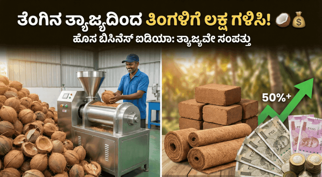 📌 ಮುಖ್ಯಾಂಶಗಳು (Highlights) ತೆಂಗಿನ ಸಿಪ್ಪೆಯಿಂದ ತಿಂಗಳಿಗೆ ₹1.5 ಲಕ್ಷದವರೆಗೆ ನಿವ್ವಳ ಲಾಭ. ನರ್ಸರಿ ಹಾಗೂ ಗಾರ್ಡನಿಂಗ್ ಕ್ಷೇತ್ರದಲ್ಲಿ ಕೋಕೋಪಿಟ್ಗೆ ಭಾರಿ ಬೇಡಿಕೆ. ಸರ್ಕಾರದಿಂದ ಸಾಲ ಹಾಗೂ ಶೇ. 35ರಷ್ಟು ಸಬ್ಸಿಡಿ ಸೌಲಭ್ಯ. ಇಂದಿನ ಕಾಲದಲ್ಲಿ ಬಹುತೇಕ ಉದ್ಯೋಗಿಗಳು ಬೇರೆಯವರ ಕೈ ಕೆಳಗೆ ಕೆಲಸ ಮಾಡುವ ಬದಲು ಸ್ವಂತ ಉದ್ಯಮ (Self Employment) ಆರಂಭಿಸಬೇಕು ಎಂಬ ಕನಸು ಕಾಣುತ್ತಾರೆ. ಆದರೆ, “ನಷ್ಟವಾದರೆ ಏನು ಮಾಡುವುದು?” ಎಂಬ ಭಯ ಅವರನ್ನು ಕಾಡುತ್ತಿರುತ್ತದೆ. ಅಂತಹವರಿಗಾಗಿ ಕಡಿಮೆ ರಿಸ್ಕ್ ಮತ್ತು ಹೆಚ್ಚಿನ … Continue reading ತೆಂಗಿನ ಚಿಪ್ಪಿನಿಂದ ಚಿನ್ನ ತೆಗೆಯಿರಿ: ಕೆಲಸಕ್ಕೆ ಗುಡ್ಬೈ ಹೇಳಿ ತಿಂಗಳಿಗೆ ಲಕ್ಷಾಂತರ ರೂಪಾಯಿ ಗಳಿಸುವ ಬ್ಯುಸಿನೆಸ್ ಐಡಿಯಾ ಇಲ್ಲಿದೆ!