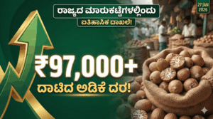 📌 ಇಂದಿನ ಅಡಿಕೆ ಮುಖ್ಯಾಂಶಗಳು ✔ ಶಿವಮೊಗ್ಗ ಸರಕು ಅಡಿಕೆಗೆ ₹97,520 ಗರಿಷ್ಠ ಬೆಲೆ ದಾಖಲು. ✔ ಮಾರುಕಟ್ಟೆ ಸ್ಥಿರ; ಬೆಲೆ ಏರಿಕೆ ನಿರೀಕ್ಷೆಯಲ್ಲಿ ರೈತರ ಭಾಗಶಃ ಮಾರಾಟ. ✔ ನಾಳೆ ಚನ್ನಗಿರಿ ಮಾರುಕಟ್ಟೆ ಆರಂಭ; ದರದಲ್ಲಿ ಬದಲಾವಣೆ ಸಾಧ್ಯತೆ. ಶಿವಮೊಗ್ಗ: ಕರ್ನಾಟಕದ ಮಲೆನಾಡು ಹಾಗೂ ಕರಾವಳಿ ಭಾಗದ ಪ್ರಮುಖ ವಾಣಿಜ್ಯ ಬೆಳೆಯಾದ ಅಡಿಕೆಯ ದರದಲ್ಲಿ ಇಂದು ಸ್ಥಿರತೆ ಕಂಡುಬಂದಿದೆ. ಜನವರಿ 27, 2026 ರ ಮಂಗಳವಾರದಂದು ಶಿವಮೊಗ್ಗ ಹಾಗೂ ರಾಜ್ಯದ ಇತರೆ ಪ್ರಮುಖ ಮಾರುಕಟ್ಟೆಗಳಲ್ಲಿ ಅಡಿಕೆ … Continue reading ಅಡಿಕೆ ಧಾರಣೆ: ರಾಜ್ಯದ ಮಾರುಕಟ್ಟೆಗಳಲ್ಲಿಂದು ಬರೋಬ್ಬರಿ 97000ರೂ ದಾಟಿದ ಅಡಿಕೆ ದರ ಯಾವ್ಯಾವ ಮಾರುಕಟ್ಟೆಯಲ್ಲಿ ಎಷ್ಟಿದೆ.?