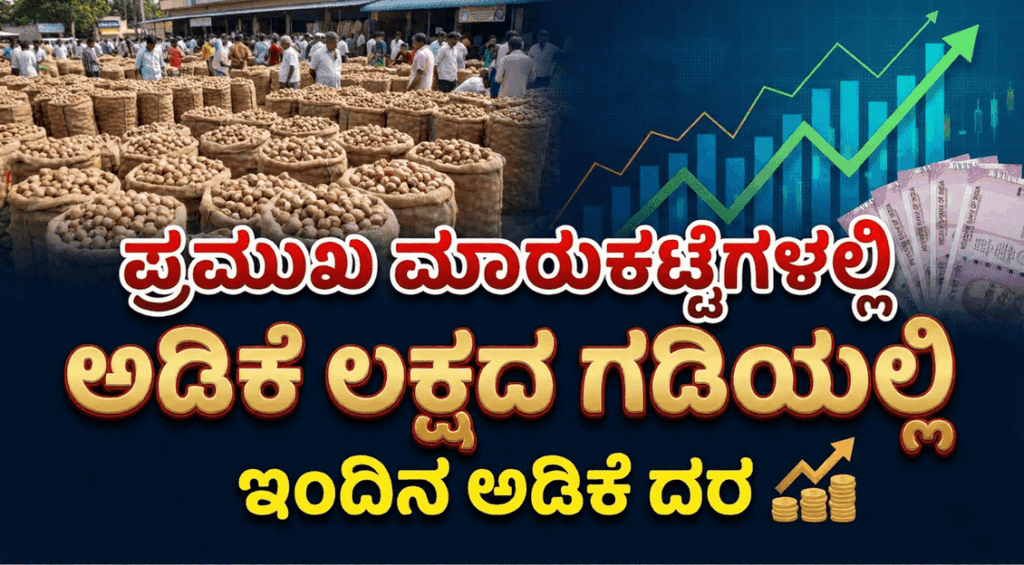 ಇಂದಿನ ಅಡಿಕೆ ಮುಖ್ಯಾಂಶಗಳು ಶಿವಮೊಗ್ಗದಲ್ಲಿ ‘ಸರಕು’ ಅಡಿಕೆಗೆ ಭರ್ಜರಿ ₹97,050 ಗರಿಷ್ಠ ಬೆಲೆ. ಮಾರುಕಟ್ಟೆಗೆ ಅಡಿಕೆ ಆವಕ ಕಡಿಮೆ: ಗುಣಮಟ್ಟದ ರಾಶಿಗೆ ಸ್ಥಿರ ಡಿಮ್ಯಾಂಡ್. ಸಿರ್ಸಿ ಮತ್ತು ಶಿವಮೊಗ್ಗದಲ್ಲಿ ₹57,000 ದಾಟಿದ ರಾಶಿ ಅಡಿಕೆ ದರ. ಫೆಬ್ರವರಿ 17, 2026 ರ ಮಂಗಳವಾರದಂದು ಕರ್ನಾಟಕದ ಪ್ರಮುಖ ಅಡಿಕೆ ಮಾರುಕಟ್ಟೆಗಳಲ್ಲಿ ವ್ಯವಹಾರವು ಸ್ಥಿರವಾಗಿ ಕಂಡುಬಂದಿದೆ. ವಿಶೇಷವಾಗಿ ಶಿವಮೊಗ್ಗ ಮಾರುಕಟ್ಟೆಯಲ್ಲಿ ಅಡಿಕೆ ಆವಕ ನಿಯಂತ್ರಿತವಾಗಿದ್ದರೂ, ಉತ್ತಮ ಗುಣಮಟ್ಟದ ರಾಶಿಗಳಿಗೆ ಬೇಡಿಕೆ ಹೆಚ್ಚಾಗಿತ್ತು. ರೈತರು ಮಾರುಕಟ್ಟೆಗೆ ತಂದ ಅಡಿಕೆಯ ಪ್ರಮಾಣ ಸಾಧಾರಣವಾಗಿದ್ದರಿಂದ, … Continue reading ರಾಜ್ಯದ ಪ್ರಮುಖ ಮಾರುಕಟ್ಟೆಗಳಲ್ಲಿ ಅಡಿಕೆಗೆ ಬಂತು ಬಂಪರ್ ಬೆಲೆ ಲಕ್ಷದ ಗಡಿಯಲ್ಲಿ ಇಂದಿನ ಅಡಿಕೆ ದರ ಎಲ್ಲೆಲ್ಲಿ ಎಷ್ಟಿದೆ.?