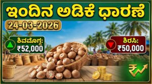 ಇಂದಿನ ಅಡಿಕೆ ಧಾರಣೆ (24-03-2026): ಶಿವಮೊಗ್ಗ, ಶಿರಸಿ ಸೇರಿ ಪ್ರಮುಖ ಮಾರ್ಕೆಟ್ ಬೆಲೆ ಪಟ್ಟಿ ಇಲ್ಲಿದೆ.