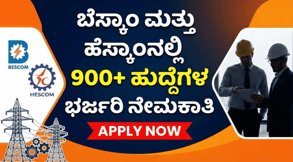 📌 ಮುಖ್ಯ ಮುಖ್ಯಾಂಶಗಳು ಬೆಸ್ಕಾಂ ಮತ್ತು ಹೆಸ್ಕಾಂನಲ್ಲಿ 908 ಅಪ್ರೆಂಟಿಸ್ ಹುದ್ದೆಗಳ ಭರ್ತಿ. ಯಾವುದೇ ಪರೀಕ್ಷೆ ಇಲ್ಲ, ಮೆರಿಟ್ ಆಧಾರಿತ ನೇರ ಆಯ್ಕೆ. ಅರ್ಜಿ ಸಲ್ಲಿಸಲು ಮಾರ್ಚ್ 02, 2026 ಕೊನೆಯ ದಿನಾಂಕ. ಬೆಂಗಳೂರು: ಕರ್ನಾಟಕದ ನಿರುದ್ಯೋಗಿ ಯುವಕರಿಗೆ ವಿದ್ಯುತ್ ಸರಬರಾಜು ಕಂಪನಿಗಳಲ್ಲಿ ಕೆಲಸ ಮಾಡಲು ಸುವರ್ಣಾವಕಾಶ ಒದಗಿಬಂದಿದೆ. ಬೆಂಗಳೂರು ವಿದ್ಯುತ್ ಸರಬರಾಜು ಕಂಪನಿ (BESCOM) ಮತ್ತು ಹುಬ್ಬಳ್ಳಿ ವಿದ್ಯುತ್ ಸರಬರಾಜು ಕಂಪನಿ ನಿಯಮಿತ (HESCOM) ಒಟ್ಟು 908 ಅಪ್ರೆಂಟಿಸ್ ಹುದ್ದೆಗಳ ಭರ್ತಿಗೆ ಅಧಿಕೃತ ಅಧಿಸೂಚನೆ ಹೊರಡಿಸಿವೆ. … Continue reading BESCOM & HESCOM Recruitment 2026: ಬೆಸ್ಕಾಂ ಮತ್ತು ಹೆಸ್ಕಾಂನಲ್ಲಿ 900+ ಹುದ್ದೆಗಳ ಭರ್ಜರಿ ನೇಮಕಾತಿ; ಕೂಡಲೇ ಅರ್ಜಿ ಸಲ್ಲಿಸಿ!
