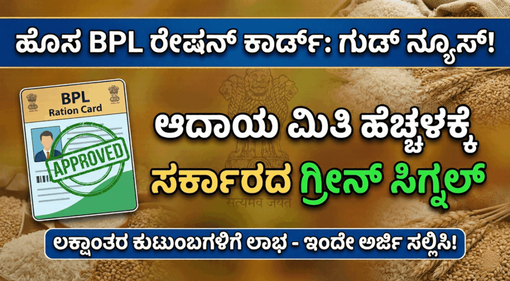 ಮುಖ್ಯಾಂಶಗಳು ಹೊಸ ರೇಷನ್ ಕಾರ್ಡ್ ಪಡೆಯಲು ಆದಾಯ ಮಿತಿ ಭಾರಿ ಏರಿಕೆ. ಹೆಚ್ಚಿನ ಕುಟುಂಬಗಳಿಗೆ ಈಗ ಉಚಿತ ಅಕ್ಕಿ ಪಡೆಯುವ ಸುವರ್ಣ ಅವಕಾಶ. ಕಾರ್ಡ್ ಉಳಿಸಿಕೊಳ್ಳಲು ಇ-ಕೆವೈಸಿ ಮಾಡಿಸುವುದು ಇನ್ಮುಂದೆ ಕಡ್ಡಾಯ. ಬೆಂಗಳೂರು: ಪಡಿತರ ಚೀಟಿಗಾಗಿ ಕಾಯುತ್ತಿರುವ ಸಾರ್ವಜನಿಕರಿಗೆ ಕೇಂದ್ರ ಸರ್ಕಾರವು ಭರ್ಜರಿ ಸಿಹಿಸುದ್ದಿ ನೀಡಿದೆ. ಹೊಸ ರೇಷನ್ ಕಾರ್ಡ್ ಪಡೆಯಲು ಅಡ್ಡಿಯಾಗಿದ್ದ ವಾರ್ಷಿಕ ಆದಾಯ ಮಿತಿಯನ್ನು ಈಗ ಹೆಚ್ಚಳ ಮಾಡಲಾಗಿದ್ದು, ಈ ನಿರ್ಧಾರದಿಂದ ಲಕ್ಷಾಂತರ ಬಡ ಮತ್ತು ಮಧ್ಯಮ ವರ್ಗದ ಕುಟುಂಬಗಳಿಗೆ ದೊಡ್ಡ ರಿಲೀಫ್ ಸಿಕ್ಕಂತಾಗಿದೆ. … Continue reading BIGNEWS: ಹೊಸ BPL ರೇಷನ್ ಕಾರ್ಡ್ ಪಡೆಯುವವರಿಗೆ ಬಂಪರ್ ಗುಡ್ ನ್ಯೂಸ್! ಸರ್ಕಾರದಿಂದ ಹೊಸ ಆದೇಶ