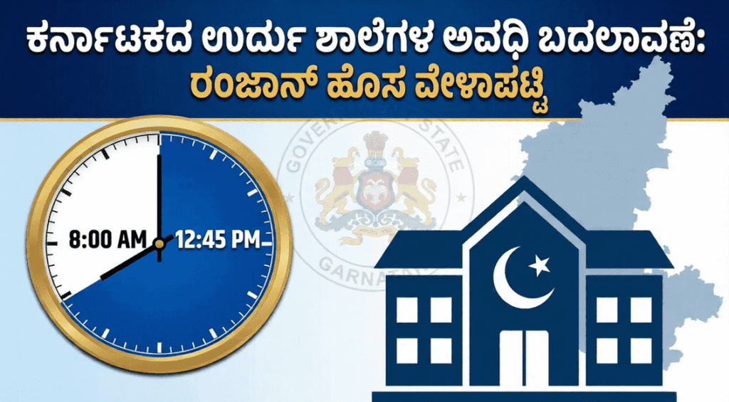 LIVE ಮುಖ್ಯಾಂಶಗಳು ರಂಜಾನ್ ಹಿನ್ನೆಲೆ ಉರ್ದು ಶಾಲೆಗಳ ಅವಧಿ ಬೆಳಿಗ್ಗೆಗೆ ಶಿಫ್ಟ್. ಬೆಳಿಗ್ಗೆ 8 ರಿಂದ ಮಧ್ಯಾಹ್ನ 12:45 ರವರೆಗೆ ಮಾತ್ರ ತರಗತಿ. ಸರ್ಕಾರಿ ಮತ್ತು ಖಾಸಗಿ ಉರ್ದು ಶಾಲೆಗಳಿಗೂ ಈ ನಿಯಮ ಅನ್ವಯ. ಬೆಂಗಳೂರು: ಮುಂಬರುವ ಪವಿತ್ರ ರಂಜಾನ್ ಮಾಸದ ಹಿನ್ನೆಲೆಯಲ್ಲಿ ಕರ್ನಾಟಕ ಸರ್ಕಾರದ ಶಿಕ್ಷಣ ಇಲಾಖೆಯು ರಾಜ್ಯದ ಉರ್ದು ಮಾಧ್ಯಮ ಶಾಲೆಗಳ ವೇಳಾಪಟ್ಟಿಯಲ್ಲಿ ಮಹತ್ವದ ಬದಲಾವಣೆ ಮಾಡಿದೆ. 2025-26ನೇ ಶೈಕ್ಷಣಿಕ ಸಾಲಿನಲ್ಲಿ ಮುಸ್ಲಿಂ ಸಮುದಾಯದ ವಿದ್ಯಾರ್ಥಿಗಳು ಮತ್ತು ಶಿಕ್ಷಕರು ಉಪವಾಸ ವ್ರತ (ರೋಜಾ) ಆಚರಿಸುವುದರಿಂದ, … Continue reading ಕರ್ನಾಟಕದಲ್ಲಿ ಉರ್ದು ಶಾಲೆಗಳ ಅವಧಿ ಬದಲಾವಣೆ: ರಂಜಾನ್ ಹಿನ್ನೆಲೆಯಲ್ಲಿ ಹೊಸ ವೇಳಾಪಟ್ಟಿ ಪ್ರಕಟ
