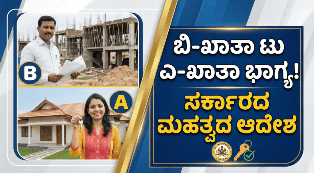ಮುಖ್ಯಾಂಶಗಳು 10 ಲಕ್ಷ ಬಿ-ಖಾತಾ ಆಸ್ತಿಗಳಿಗೆ ಎ-ಖಾತಾ ಭಾಗ್ಯ. ಸೆಪ್ಟೆಂಬರ್ 10, 2024ಕ್ಕೂ ಮುನ್ನ ಆಸ್ತಿ ಹೊಂದಿರಬೇಕು. ಮನೆ ನಕ್ಷೆ ಮಂಜೂರಾತಿ ಮತ್ತು ಸಾಲಕ್ಕೆ ಹಾದಿ ಸುಗಮ. ಬೆಂಗಳೂರು: ರಾಜ್ಯದ ನಗರ ಪ್ರದೇಶಗಳಲ್ಲಿ ವಾಸಿಸುತ್ತಿರುವ ಲಕ್ಷಾಂತರ ಜನರಿಗೆ ಕರ್ನಾಟಕ ಸರ್ಕಾರವು ಹೊಸ ವರ್ಷದ ಬಂಪರ್ ಕೊಡುಗೆ ನೀಡಿದೆ. ನಗರ ಸ್ಥಳೀಯ ಸಂಸ್ಥೆಗಳ ವ್ಯಾಪ್ತಿಯಲ್ಲಿರುವ ಅನಧಿಕೃತ ಬಡಾವಣೆಗಳ (Unauthorised Layouts) ‘ಬಿ-ಖಾತಾ’ ಹೊಂದಿರುವ ನಿವೇಶನ, ಫ್ಲಾಟ್ ಹಾಗೂ ಕಟ್ಟಡಗಳನ್ನು ಇನ್ಮುಂದೆ ‘ಎ-ಖಾತಾ’ ಆಗಿ ಪರಿವರ್ತಿಸಲು ರಾಜ್ಯ ಸರ್ಕಾರವು ಮಹತ್ವದ … Continue reading Breaking: ರಾಜ್ಯದ ಅನಧಿಕೃತ ಬಡಾವಣೆಗಳ ನಿವೇಶನಗಳಿಗೆ ಎ-ಖಾತಾ ಭಾಗ್ಯ: ಸರ್ಕಾರದಿಂದ ಮಹತ್ವದ ಆದೇಶ.!