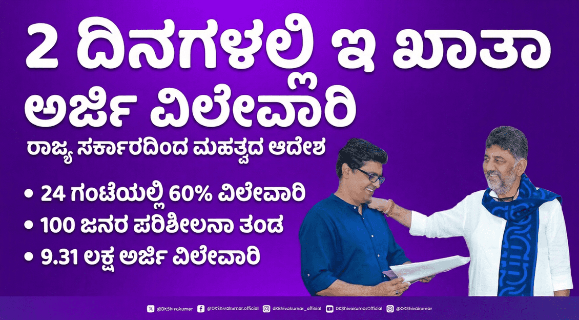 - ಎರಡೇ ದಿನದಲ್ಲಿ ಇ-ಖಾತಾ ಅರ್ಜಿ ವಿಲೇವಾರಿಗೆ ಕಟ್ಟುನಿಟ್ಟಿನ ಸೂಚನೆ.