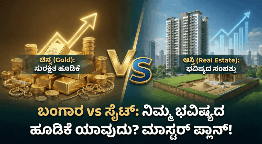 ಮುಖ್ಯಾಂಶಗಳು ಬಂಗಾರ: ಕಳೆದ 15 ವರ್ಷಗಳಲ್ಲಿ ಶೇ. 15ರಷ್ಟು ಭರ್ಜರಿ ಲಾಭ. ಆಸ್ತಿ: 2034ರ ವೇಳೆಗೆ ರಿಯಲ್ ಎಸ್ಟೇಟ್ ಕ್ಷೇತ್ರ ಭಾರಿ ಬೆಳವಣಿಗೆ. ಆಯ್ಕೆ: ತುರ್ತು ಹಣಕ್ಕೆ ಚಿನ್ನ, ತಿಂಗಳ ಆದಾಯಕ್ಕೆ ಸೈಟ್ ಸೂಕ್ತ. ಬೆಂಗಳೂರು ಸೇರಿದಂತೆ ದೇಶದ ಪ್ರಮುಖ ನಗರಗಳಲ್ಲಿ ಆಸ್ತಿ ದರ ಗಗನಕ್ಕೇರುತ್ತಿದ್ದರೆ, ಅತ್ತ ಚಿನ್ನದ ಬೆಲೆಯೂ ಹೊಸ ದಾಖಲೆ ಬರೆಯುತ್ತಿದೆ. ಈ ಎರಡೂ ಹೂಡಿಕೆಗಳ ಸಾಧಕ-ಬಾಧಕಗಳನ್ನು ಈ ಕೆಳಗಿನ ಪಟ್ಟಿಯಲ್ಲಿ ವಿವರಿಸಲಾಗಿದೆ. ಚಿನ್ನ: ಸಂಕಷ್ಟದ ಸಮಯದ ಆಪತ್ಬಾಂಧವ ಭಾರತೀಯ ಸಂಸ್ಕೃತಿಯಲ್ಲಿ ಚಿನ್ನವು ಕೇವಲ … Continue reading ಹೂಡಿಕೆಯ ಮಹಾಯುದ್ಧ: ಚಿನ್ನ Vs ರಿಯಲ್ ಎಸ್ಟೇಟ್ – ಯಾವುದು ಲಾಭದಾಯಕ?