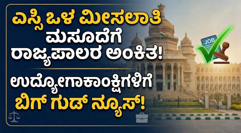 ಸರ್ಕಾರಿ ಕೆಲಸಕ್ಕೆ ಗುಡ್ ನ್ಯೂಸ್! ಎಸ್ಸಿ ಒಳ ಮೀಸಲಾತಿ ಮಸೂದೆಗೆ ರಾಜ್ಯಪಾಲರ ಅಧಿಕೃತ ಅಂಕಿತ. ನಿಲ್ಲಿಸಲಾಗಿದ್ದ ಸರ್ಕಾರಿ ನೇಮಕಾತಿ ಪ್ರಕ್ರಿಯೆಗಳು ಶೀಘ್ರದಲ್ಲೇ ಶುರು. 101 ಉಪ ಜಾತಿಗಳಿಗೆ 17% ಮೀಸಲಾತಿ ಹಂಚಿಕೆ ಅಂತಿಮ. ಬೆಂಗಳೂರು: ಕರ್ನಾಟಕ ರಾಜ್ಯದ ಸಾಮಾಜಿಕ ನ್ಯಾಯದ ಇತಿಹಾಸದಲ್ಲಿ ಇಂದು ಮಹತ್ವದ ದಿನ. ದಶಕಗಳ ಹೋರಾಟದ ಫಲವಾಗಿ ಸಿದ್ಧಗೊಂಡಿದ್ದ ‘ಪರಿಶಿಷ್ಟ ಜಾತಿ (SC) ಒಳ ಮೀಸಲಾತಿ’ ಮಸೂದೆಗೆ ರಾಜ್ಯಪಾಲ ಥಾವರ್ ಚಂದ್ ಗೆಹ್ಲೋಟ್ ಅವರು ಅಧಿಕೃತವಾಗಿ ಅಂಕಿತ ಹಾಕಿದ್ದಾರೆ. ಈ ಬೆಳವಣಿಗೆಯಿಂದಾಗಿ ಕಳೆದ ಹಲವು … Continue reading ಎಸ್ಸಿ ಒಳ ಮೀಸಲಾತಿ ಮಸೂದೆಗೆ ರಾಜ್ಯಪಾಲರ ಅಂಕಿತ: ಸರ್ಕಾರಿ ಉದ್ಯೋಗಾಕಾಂಕ್ಷಿಗಳಿಗೆ ಸಿಗಲಿದೆಯೇ ಬಂಪರ್ ಸುದ್ದಿ?