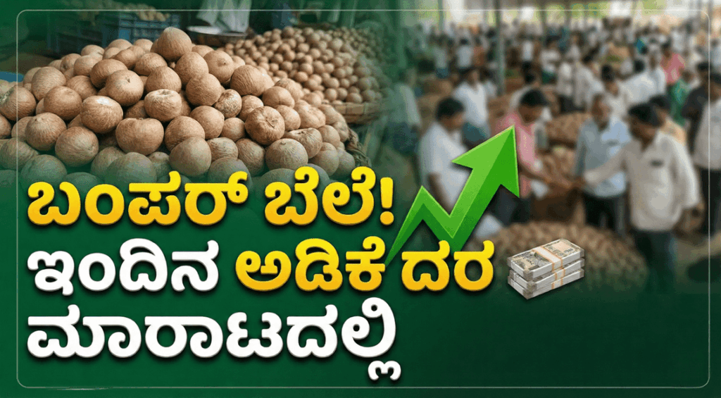 ಅಡಿಕೆ ಧಾರಣೆ: ಬಂಪರ್ ಬೆಲೆಯ ಮಾರಾಟದಲ್ಲಿ ಇಂದಿನ ಅಡಿಕೆ ದರ ಮಾರುಕಟ್ಟೆಯಲ್ಲಿ ಬೆಳೆಗಾರರು ಖುಷ್ ಎಲ್ಲೆಲ್ಲಿ ಎಷ್ಟಿದೆ.?