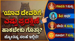 ದೇವಸ್ಥಾನದ ಪ್ರದಕ್ಷಿಣೆ ನಿಯಮಗಳು: 🔸 ಗಣಪತಿ: 1 ಪ್ರದಕ್ಷಿಣೆ 🔸 ಶಿವ: ಅರ್ಧ ಪ್ರದಕ್ಷಿಣೆ (ಸೋಮಸೂತ್ರ ದಾಟಬೇಡಿ) 🔸 ದೇವಿ: 4 ಪ್ರದಕ್ಷಿಣೆ 🔸 ಸೂರ್ಯ: 7 ಪ್ರದಕ್ಷಿಣೆ ದೇವಸ್ಥಾನಕ್ಕೆ ಹೋದಾಗ ಗರ್ಭಗುಡಿಯ ಸುತ್ತ ಸುಮ್ಮನೆ ಓಡುತ್ತಿದ್ದೀರಾ? ಭಕ್ತಿಯಿಂದ ಪ್ರದಕ್ಷಿಣೆ ಹಾಕಿದರೂ ಫಲ ಸಿಗುತ್ತಿಲ್ಲವೇ? ನಾವೆಲ್ಲರೂ ದೇವಸ್ಥಾನಕ್ಕೆ ಹೋದಾಗ ಪ್ರದಕ್ಷಿಣೆ ಹಾಕುತ್ತೇವೆ. ಆದರೆ ಹೆಚ್ಚಿನವರು ಎಲ್ಲ ದೇವರಿಗೂ ಮೂರು ಸುತ್ತು ಬರುತ್ತಾರೆ. ವಾಸ್ತವವಾಗಿ, ನಮ್ಮ ಶಾಸ್ತ್ರಗಳ ಪ್ರಕಾರ ಪ್ರತಿಯೊಬ್ಬ ದೇವರಿಗೂ ಪ್ರದಕ್ಷಿಣೆ ಹಾಕಲು ಒಂದು ನಿರ್ದಿಷ್ಟ ಲೆಕ್ಕವಿದೆ. … Continue reading ದೇವಸ್ಥಾನಕ್ಕೆ ಹೋದಾಗ ಎಲ್ಲರಿಗೂ 3 ಪ್ರದಕ್ಷಿಣೆ ಹಾಕುತ್ತಿದ್ದೀರಾ? ನಿಲ್ಲಿ! ಯಾವ ದೇವರಿಗೆ ಎಷ್ಟು ಸುತ್ತು ಬರಬೇಕು ಗೊತ್ತಾ?