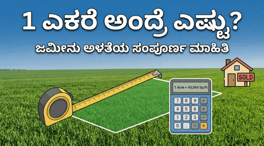 📌 ಮುಖ್ಯಾಂಶಗಳು 1 ಎಕರೆ ಅಂದರೆ 40 ಗುಂಟೆ ಅಥವಾ 43,560 ಚದರ ಅಡಿ. ಜಮೀನು ಖರೀದಿಸುವ ಮುನ್ನ ಭಾರಮುಕ್ತ ಪ್ರಮಾಣಪತ್ರ (EC) ಪಡೆಯುವುದು ಕಡ್ಡಾಯ. ಆಧಾರ್ ಮೂಲಕ ಭೂಮಿ ಮಾರಾಟಗಾರರ ಅಸಲಿ ಗುರುತು ಖಚಿತಪಡಿಸಿಕೊಳ್ಳಿ. ನಮ್ಮ ದೇಶದಲ್ಲಿ, ಅದರಲ್ಲೂ ಮುಖ್ಯವಾಗಿ ಕರ್ನಾಟಕದಲ್ಲಿ ಕೃಷಿ ಜಮೀನು ಅಥವಾ ಸೈಟುಗಳನ್ನು ಖರೀದಿಸುವಾಗ ‘ಎಕರೆ’ ಎಂಬ ಪದವನ್ನು ನಾವು ಪದೇ ಪದೇ ಕೇಳುತ್ತೇವೆ. ರಿಯಲ್ ಎಸ್ಟೇಟ್ ವ್ಯವಹಾರವಿರಲಿ ಅಥವಾ ಕೃಷಿ ಚಟುವಟಿಕೆಯಿರಲಿ, ಭೂಮಿಯ ನಿಖರ ಅಳತೆ ತಿಳಿದಿರುವುದು ಅತ್ಯಗತ್ಯ. ನಿಮ್ಮ … Continue reading 1 ಎಕರೆ ಅಂದ್ರೆ ಎಷ್ಟು? ಜಮೀನು ಅಳತೆಯ ನಿಖರ ಲೆಕ್ಕಾಚಾರ ಮತ್ತು ಭೂಮಿ ಖರೀದಿಸುವ ಮುನ್ನ ಗಮನಿಸಬೇಕಾದ ಅಂಶಗಳು