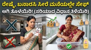 ✨ ಮುಖ್ಯಾಂಶಗಳು ರೇಷ್ಮೆ ಸೀರೆಗೆ ಕಠಿಣ ಸೋಪು, ಬ್ರಷ್ ಬೇಡ; ಬೇಬಿ ಶ್ಯಾಂಪೂ ಬೆಸ್ಟ್. ಸೀರೆಯನ್ನು ಎಂದಿಗೂ ಹಿಂಡಬೇಡಿ, ಟವೆಲ್ ಬಳಸಿ ನೀರು ತೆಗೆಯಿರಿ. ನೆರಳಲ್ಲಿ ಒಣಗಿಸಿ, ಕಾಟನ್ ಕವರ್ನೊಳಗೆ ಸೀರೆ ಸೇಫ್ ಆಗಿಡಿ. ಮದುವೆ, ಮುಂಜಿ, ಹಬ್ಬ ಅಂತ ಬಂದ್ರೆ ಹೆಣ್ಣುಮಕ್ಕಳ ಮೊದಲ ಆಯ್ಕೆ ರೇಷ್ಮೆ, ಬನಾರಸಿ ಅಥವಾ ಕಾಂಜೀವರಂ ಸೀರೆ ಅಲ್ವಾ? ಆದರೆ, ಒಮ್ಮೆ ಉಟ್ಟ ಸೀರೆಯನ್ನು ಮತ್ತೆ ಮಡಚಿ ಇಡೋಕೆ ಭಯ. ಅದಕ್ಕೆ ಅಂಟಿರೋ ಕಲೆ, ಬೆವರಿನ ವಾಸನೆ ಹೋಗಲಾಡಿಸಲು ಪ್ರತಿಬಾರಿ ಡ್ರೈ … Continue reading ರೇಷ್ಮೆ ಸೀರೆ ಡ್ರೈ ಕ್ಲೀನ್ಗೆ ಕೊಡುವ ಮುನ್ನ ಈ ಟ್ರಿಕ್ ಬಳಸಿ, ಸಾವಿರಾರು ರೂಪಾಯಿ ಉಳಿಸಿ! ಮನೆಯಲ್ಲೇ ತೊಳೆಯುವ 5 ಸುಲಭ ವಿಧಾನಗಳು!
