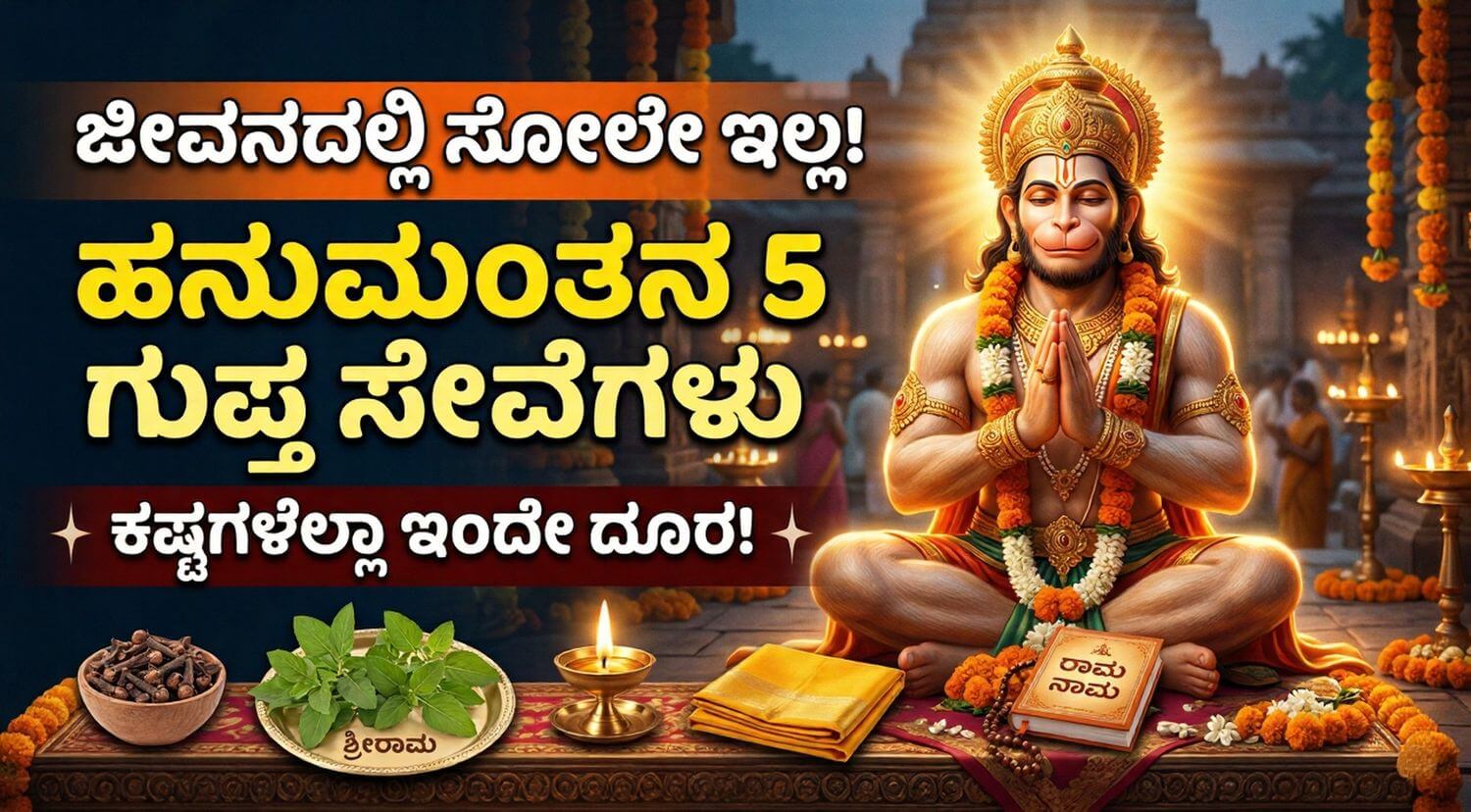 ಹನುಮಂತನು ಶಕ್ತಿ, ಭಕ್ತಿ ಮತ್ತು ಬುದ್ಧಿವಂತಿಕೆಯ ಪ್ರತೀಕ. ಸಾಮಾನ್ಯವಾಗಿ ಭಕ್ತರು ದೇವಸ್ಥಾನಕ್ಕೆ ಹೋಗಿ ಹಣ್ಣು-ಕಾಯಿ ಅರ್ಪಿಸುವುದು ವಾಡಿಕೆ. ಆದರೆ ಶಾಸ್ತ್ರಗಳ ಪ್ರಕಾರ, ಕೆಲವು ವಿಶೇಷ ವಸ್ತುಗಳನ್ನು ಯಾರಿಗೂ ತಿಳಿಯದಂತೆ (ಗುಪ್ತವಾಗಿ) ಅರ್ಪಿಸುವುದರಿಂದ ವಿಶೇಷ ಫಲಿತಾಂಶಗಳು ದೊರೆಯುತ್ತವೆ ಎಂದು ಹೇಳಲಾಗುತ್ತದೆ. ಈ ಕೆಳಗಿನ 5 ಸೇವೆಗಳನ್ನು ಮಂಗಳವಾರ ಅಥವಾ ಶನಿವಾರದಂದು ಮಾಡುವುದು ಅತ್ಯಂತ ಶುಭ.