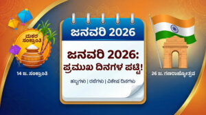 📅 ಈ ತಿಂಗಳ ಹೈಲೈಟ್ಸ್: ಜ. 14ಕ್ಕೆ ಮಕರ ಸಂಕ್ರಾಂತಿ, 26ಕ್ಕೆ ಗಣರಾಜ್ಯೋತ್ಸವ ಸಂಭ್ರಮ. ವಿವೇಕಾನಂದರಿಂದ ನೇತಾಜಿ ತನಕ; ಮಹಾನ್ ನಾಯಕರ ಜಯಂತಿ ಪಟ್ಟಿ. ಬ್ಯಾಂಕ್ ರಜೆ ಮತ್ತು ಸ್ಕೂಲ್ ಫಂಕ್ಷನ್ ಪ್ಲಾನಿಂಗ್ಗೆ ಈ ಪಟ್ಟಿ ಸೇವ್ ಮಾಡಿ. 2025 ಮುಗಿದು 2026ಕ್ಕೆ ಕಾಲಿಡಲು ಇನ್ನು ಕೆಲವೇ ದಿನಗಳು ಬಾಕಿ. ಹೊಸ ವರ್ಷ ಬಂತೆಂದರೆ ಸಾಕು, “ಈ ತಿಂಗಳು ಹಬ್ಬ ಯಾವಾಗ? ರಜೆ ಯಾವಾಗ ಸಿಗುತ್ತೆ? ಮಕ್ಕಳಿಗೆ ಶಾಲೆಯಲ್ಲಿ ಏನೆಲ್ಲಾ ವಿಶೇಷ ದಿನಗಳಿರುತ್ತೆ?” ಅನ್ನೋ ಪ್ರಶ್ನೆ ಎಲ್ಲರಲ್ಲೂ … Continue reading ಜನವರಿ 2026ರಲ್ಲಿ ಗಣರಾಜ್ಯೋತ್ಸವ, ಸಂಕ್ರಾಂತಿ ಬಿಟ್ಟರೆ ಬೇರೆ ಏನೆಲ್ಲಾ ವಿಶೇಷ ಇದೆ ಗೊತ್ತಾ? ಇಲ್ಲಿದೆ ಫುಲ್ ಲಿಸ್ಟ್!
