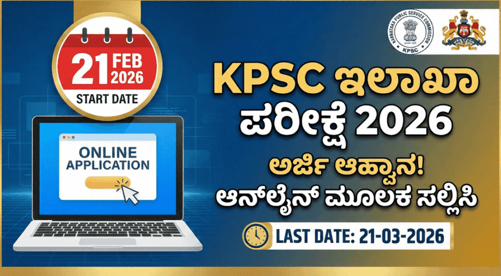 ಸುದ್ದಿ ಮುಖ್ಯಾಂಶಗಳು KPSC ಇಲಾಖಾ ಪರೀಕ್ಷೆಗೆ ಅಧಿಕೃತ ಅಧಿಸೂಚನೆ ಪ್ರಕಟ. ಫೆಬ್ರವರಿ 21ರಿಂದ ಆನ್ಲೈನ್ ಅರ್ಜಿ ಸಲ್ಲಿಕೆ ಆರಂಭ. ಮಾರ್ಚ್ 21ರ ಒಳಗೆ ಅರ್ಜಿ ಸಲ್ಲಿಸಲು ಕಡೆಯ ದಿನ. ಬೆಂಗಳೂರು: ಕರ್ನಾಟಕ ರಾಜ್ಯ ಸರ್ಕಾರಿ ಸೇವೆಗಳಲ್ಲಿರುವ ನೌಕರರ ವೃತ್ತಿಜೀವನದ ಬೆಳವಣಿಗೆಗೆ ಪೂರಕವಾಗಿರುವ ಇಲಾಖಾ ಪರೀಕ್ಷೆಗಳ (Departmental Examinations) ಕುರಿತು ಮಹತ್ವದ ಪ್ರಕಟಣೆ ಹೊರಬಿದ್ದಿದೆ. ಕರ್ನಾಟಕ ಲೋಕಸೇವಾ ಆಯೋಗವು (KPSC) 2026ರ ಪ್ರಥಮ ಅಧಿವೇಶನದ ಇಲಾಖಾ ಪರೀಕ್ಷೆಗಳಿಗೆ ಅಧಿಕೃತವಾಗಿ ಅಧಿಸೂಚನೆ ಹೊರಡಿಸಿದ್ದು, ಅರ್ಹ ಅಭ್ಯರ್ಥಿಗಳಿಂದ ಆನ್ಲೈನ್ ಮೂಲಕ ಅರ್ಜಿಗಳನ್ನು … Continue reading ಕರ್ನಾಟಕ ಸರ್ಕಾರಿ ನೌಕರರಿಗೆ ಸಿಹಿ ಸುದ್ದಿ: 2026ರ ಮೊದಲ ಅವಧಿಯ ಇಲಾಖಾ ಪರೀಕ್ಷೆಗೆ ಅರ್ಜಿ ಆಹ್ವಾನ – ಪೂರ್ಣ ವಿವರ ಇಲ್ಲಿದೆ