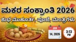 ಸಂಕ್ರಾಂತಿ ಹಬ್ಬದ ಹೈಲೈಟ್ಸ್ ಹಬ್ಬದ ದಿನಾಂಕ: ನಾಳೆ, ಜನವರಿ 14, 2026 (ಬುಧವಾರ). ಸಂಕ್ರಾಂತಿ ಪುಣ್ಯಕಾಲ: ಮಧ್ಯಾಹ್ನ 03:13 ರಿಂದ ಸಂಜೆ 04:58 ರವರೆಗೆ. ವಿಶೇಷತೆ: ಈ ಸಮಯದಲ್ಲಿ ಮಾಡುವ ‘ದಾನ’ ಮತ್ತು ‘ಜಪ’ಕ್ಕೆ ಸಾವಿರ ಪಟ್ಟು ಪುಣ್ಯ ಪ್ರಾಪ್ತಿ. ನಾಳೆ ನಾಡಿನಾದ್ಯಂತ ಸುಗ್ಗಿ ಹಬ್ಬ ಮಕರ ಸಂಕ್ರಾಂತಿಯ ಸಂಭ್ರಮ. ಸೂರ್ಯ ದೇವನು ತನ್ನ ಪಥವನ್ನು ಬದಲಿಸಿ, ಮಕರ ರಾಶಿಗೆ ಪ್ರವೇಶಿಸುವ ಪುಣ್ಯ ದಿನವಿದು. ಕತ್ತಲೆಯಿಂದ ಬೆಳಕಿನೆಡೆಗೆ (ಉತ್ತರಾಯಣ) ಸಾಗುವ ಈ ದಿನದಂದು, ಸರಿಯಾದ ಮುಹೂರ್ತದಲ್ಲಿ ಪೂಜೆ … Continue reading Makar Sankranti 2026: ನಾಳೆ ಸಂಕ್ರಾಂತಿ ಹಬ್ಬ; ಪೂಜೆಗೆ ‘ಶುಭ ಮುಹೂರ್ತ’ ಯಾವುದು? ಮಧ್ಯಾಹ್ನ 3:13 ಕ್ಕೆ ಏನು ಮಾಡಬೇಕು?