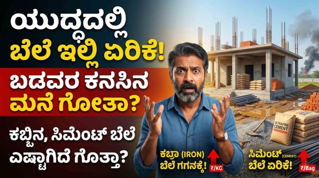🏠 ಮನೆ ಕಟ್ಟುವವರೇ ಎಚ್ಚರ: ಬೆಲೆ ಏರಿಕೆಯ ಬಿಸಿ! ಕಬ್ಬಿಣದ ಬೆಲೆ: ಅಂತರಾಷ್ಟ್ರೀಯ ಮಾರುಕಟ್ಟೆ ಏರುಪೇರಿನಿಂದ ಕಬ್ಬಿಣದ ದರ ಗಗನಕ್ಕೆ. ಸಿಮೆಂಟ್ ದರ: ಪ್ರತಿ ಚೀಲಕ್ಕೆ 30 ರಿಂದ 50 ರೂಪಾಯಿಗಳಷ್ಟು ದಿಢೀರ್ ಏರಿಕೆ. ಸಲಹೆ: ಬೆಲೆ ಸ್ಥಿರವಾಗುವವರೆಗೆ ಅಥವಾ ಬಜೆಟ್ ಹೊಂದಾಣಿಕೆಯಾಗುವವರೆಗೆ ದೊಡ್ಡ ನಿರ್ಧಾರ ಬೇಡ. ನಿಮ್ಮ ಸ್ವಂತ ಮನೆಯ ಕನಸಿಗೆ ಅಡಿಪಾಯ ಹಾಕಿದ್ದೀರಾ? ಅಥವಾ ಈಗಷ್ಟೇ ಲೇಔಟ್ನಲ್ಲಿ ಸೈಟು ನೋಡಿ ಮನೆ ಕಟ್ಟಲು ಪ್ಲಾನ್ ಮಾಡುತ್ತಿದ್ದೀರಾ? ಹಾಗಾದರೆ ನಿಮ್ಮ ಜೇಬಿಗೆ ಕತ್ತರಿ ಬೀಳುವ ಸಮಯ … Continue reading ಯುದ್ಧ ಎಲ್ಲೋ ನಡೀತಿದೆ, ಆದ್ರೆ ನಿಮ್ಮ ಮನೆ ಕನಸಿಗೆ ಕುತ್ತು ಬಂದಿದ್ದೆಲ್ಲಿ? ಕಬ್ಬಿಣ, ಸಿಮೆಂಟ್ ಬೆಲೆ ಕೇಳಿದ್ರೆ ಶಾಕ್ ಆಗ್ತೀರಾ!