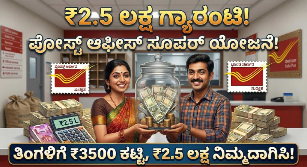 ಮುಖ್ಯಾಂಶಗಳು: ತಿಂಗಳಿಗೆ ಕೇವಲ ₹3,500 ಕಟ್ಟಿದರೆ 5 ವರ್ಷಕ್ಕೆ ₹2.5 ಲಕ್ಷ ಗ್ಯಾರಂಟಿ. ಪೋಸ್ಟ್ ಆಫೀಸ್ ಸ್ಕೀಮ್ ಆಗಿದ್ದರಿಂದ ಶೇ.100ರಷ್ಟು ಸರ್ಕಾರದ ಭದ್ರತೆ. 1 ವರ್ಷದ ನಂತರ ಕಟ್ಟಿದ ಹಣದ ಮೇಲೆ ಶೇ.50ರಷ್ಟು ಲೋನ್ ಸೌಲಭ್ಯ. ಮನೇಲಿ ಗಂಡ-ಹೆಂಡತಿ ಇಬ್ಬರೂ ದುಡಿತೀವಿ, ಆದ್ರೆ ತಿಂಗಳ ಕೊನೇಲಿ ನೋಡಿದ್ರೆ ಕೈಯಲ್ಲಿ ಬಿಡಿಗಾಸು ಉಳಿಯಲ್ಲ!” ಅನ್ನೋ ಚಿಂತೆ ನಿಮ್ಮದಾ? ಹಾಗಾದರೆ ಸ್ವಲ್ಪ ನಿಲ್ಲಿ. ನಾವು ಎಷ್ಟೇ ಕಷ್ಟಪಟ್ಟು ದುಡಿದರೂ, ಸರಿಯಾದ ಜಾಗದಲ್ಲಿ ಹೂಡಿಕೆ (Investment) ಮಾಡದಿದ್ದರೆ ಆ ದುಡ್ಡಿಗೆ ಬೆಲೆ … Continue reading ತಿಂಗಳಿಗೆ ಕೇವಲ ₹3500 ಪೋಸ್ಟ್ ಆಫೀಸ್ನಲ್ಲಿ ಸೇವ್ ಮಾಡಿದ್ರೆ 5 ವರ್ಷಕ್ಕೆ ಎಷ್ಟು ಲಕ್ಷ ಸಿಗುತ್ತೆ ಗೊತ್ತಾ?