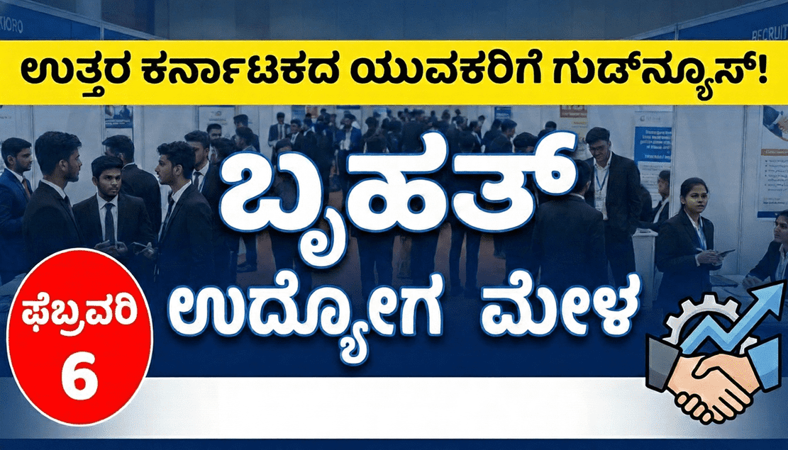 ಕೆಲಸ ಹುಡುಕುತ್ತಿದ್ದೀರಾ? ಉತ್ತರ ಕರ್ನಾಟಕದ ಯುವಕರಿಗೆ ಬಂಪರ್ ಕೊಡುಗೆ: ಫೆಬ್ರವರಿ 6ಕ್ಕೆ ಬೃಹತ್ ಉದ್ಯೋಗ ಮೇಳ!