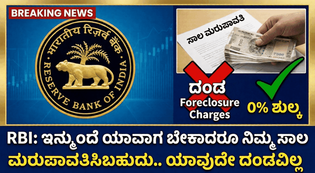 📌 ಮುಖ್ಯಾಂಶಗಳು ಸಾಲ ಮುಂಚಿತವಾಗಿ ತೀರಿಸಲು ಈಗ ಯಾವುದೇ ದಂಡವಿಲ್ಲ. ಗೃಹ, ವಾಹನ ಮತ್ತು ವೈಯಕ್ತಿಕ ಸಾಲಗಾರರಿಗೆ ಭರ್ಜರಿ ಲಾಭ. RBI ಹೊಸ ನಿಯಮದಿಂದ ಸಾಲಗಾರರ ಜೇಬಿಗೆ ಉಳಿತಾಯ. ಸಾಮಾನ್ಯವಾಗಿ ಬ್ಯಾಂಕಿನಲ್ಲಿ ಸಾಲ ಪಡೆಯುವುದು ಎಷ್ಟು ಕಷ್ಟವೋ, ಪಡೆದ ಸಾಲವನ್ನು ಅವಧಿಗಿಂತ ಮುಂಚಿತವಾಗಿ ಪಾವತಿಸಿ ಸಾಲಮುಕ್ತರಾಗುವುದು ಕೂಡ ಅಷ್ಟೇ ತಲೆನೋವಿನ ಕೆಲಸವಾಗಿತ್ತು. ಕೈಯಲ್ಲಿ ಹಣವಿದ್ದಾಗ ಸಾಲ ತೀರಿಸೋಣವೆಂದರೆ, ಬ್ಯಾಂಕುಗಳು ವಿಧಿಸುತ್ತಿದ್ದ ‘ಫೋರ್ಕ್ಲೋಸರ್ ಚಾರ್ಜ್ಗಳು’ (Foreclosure Charges) ಜನರನ್ನು ಕಂಗಾಲಾಗಿಸುತ್ತಿದ್ದವು. ಆದರೆ ಈಗ ಭಾರತೀಯ ರಿಸರ್ವ್ ಬ್ಯಾಂಕ್ (RBI) … Continue reading ಬ್ಯಾಂಕ್ ಸಾಲಗಾರರಿಗೆ RBI ಬಿಗ್ ಗಿಫ್ಟ್: ಇನ್ಮುಂದೆ ಯಾವಾಗ ಬೇಕಾದರೂ ಸಾಲ ತೀರಿಸಿಸಬಹುದು, ದಂಡ ಕಟ್ಟುವಂತಿಲ್ಲ!