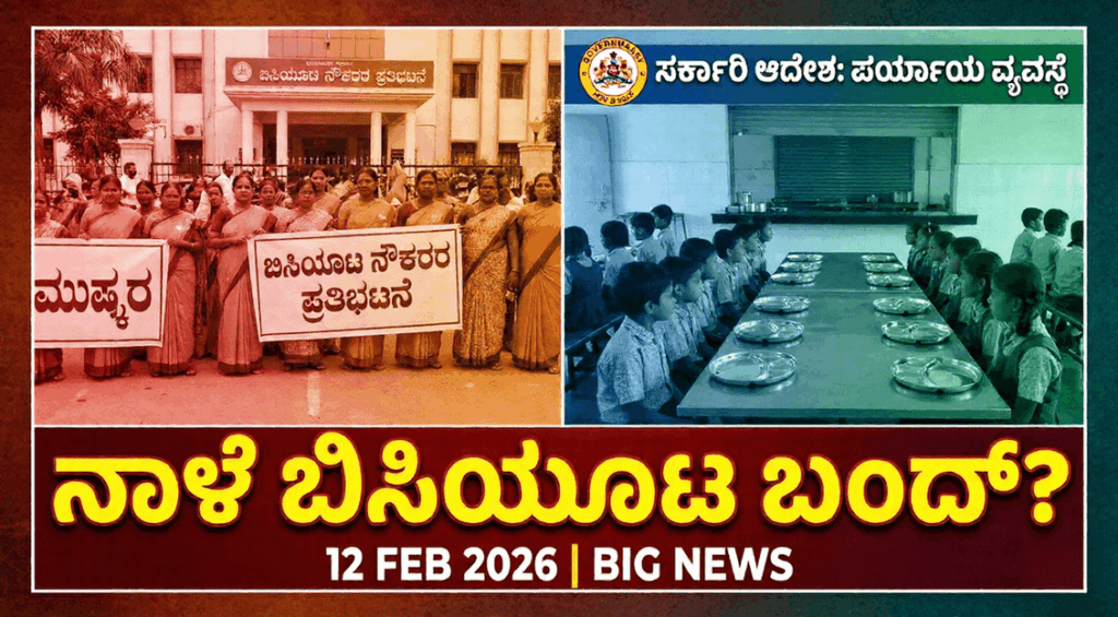 📌 ಮುಖ್ಯಾಂಶಗಳು ✔ ಫೆಬ್ರವರಿ 12ರಂದು ರಾಜ್ಯಾದ್ಯಂತ ಬಿಸಿಯೂಟ ನೌಕರರ ಮುಷ್ಕರ. ✔ ಊಟ, ಕ್ಷೀರಭಾಗ್ಯ ವ್ಯತ್ಯಯವಾಗದಂತೆ ಸರ್ಕಾರದಿಂದ ಪರ್ಯಾಯ ಆದೇಶ. ✔ ಮಕ್ಕಳಿಗೆ ತೊಂದರೆಯಾಗದಂತೆ ಕ್ರಮವಹಿಸಲು ಮುಖ್ಯ ಶಿಕ್ಷಕರಿಗೆ ಸೂಚನೆ. ಕರ್ನಾಟಕದಾದ್ಯಂತ ಇರುವ ಸರ್ಕಾರಿ ಮತ್ತು ಅನುದಾನಿತ ಶಾಲೆಗಳ ವಿದ್ಯಾರ್ಥಿಗಳಿಗೆ ನಾಳೆ ಬಿಸಿಯೂಟದ ಲಭ್ಯತೆಯಲ್ಲಿ ವ್ಯತ್ಯಯ ಉಂಟಾಗುವ ಸಾಧ್ಯತೆ ಇದೆ. ವಿವಿಧ ಬೇಡಿಕೆಗಳ ಈಡೇರಿಕೆಗಾಗಿ ಆಗ್ರಹಿಸಿ ಅಕ್ಷರ ದಾಸೋಹ ನೌಕರರು ಪ್ರತಿಭಟನೆಗೆ ಕರೆ ನೀಡಿರುವುದು ಶಿಕ್ಷಣ ಇಲಾಖೆಯಲ್ಲಿ ತಲ್ಲಣ ಮೂಡಿಸಿದೆ. ಮುಷ್ಕರದ ಹಿನ್ನೆಲೆ ಮತ್ತು ಕಾರಣಗಳು … Continue reading ಬ್ರೇಕಿಂಗ್ ನ್ಯೂಸ್: ನಾಳೆ ರಾಜ್ಯಾದ್ಯಂತ ಶಾಲಾ ಬಿಸಿಯೂಟ ಸ್ಥಗಿತ? ಮುಷ್ಕರದ ನಡುವೆ ಪರ್ಯಾಯ ವ್ಯವಸ್ಥೆಗೆ ಸರ್ಕಾರ ಸಜ್ಜು!