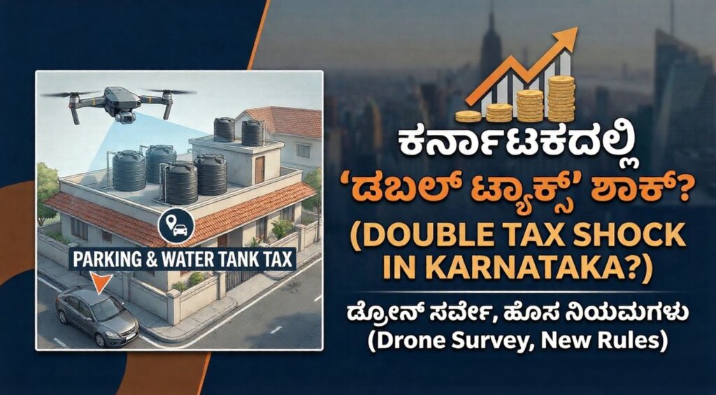 ಮುಖ್ಯಾಂಶಗಳು (Highlights) ಮನೆ ಮೇಲೆ ಎರಡು ಟ್ಯಾಂಕ್ ಇದ್ದರೆ ಇನ್ಮುಂದೆ ಬೀಳುತ್ತೆ ಡಬಲ್ ಟ್ಯಾಕ್ಸ್! ಪಾರ್ಕಿಂಗ್ ಜಾಗಕ್ಕೂ ಪಾವತಿಸಬೇಕು ಹೆಚ್ಚಿನ ತೆರಿಗೆ; ಡ್ರೋನ್ ಸರ್ವೇ ಆರಂಭ. ನಗರವಾಸಿಗಳ ಆಸ್ತಿ ತೆರಿಗೆ ನಿಯಮದಲ್ಲಿ ಭಾರಿ ಬದಲಾವಣೆ ತಂದ ಸರ್ಕಾರ. ಈಗಾಗಲೇ ಅಗತ್ಯ ವಸ್ತುಗಳ ಬೆಲೆ ಏರಿಕೆಯಿಂದ ಕಂಗೆಟ್ಟಿರುವ ಕರ್ನಾಟಕದ ನಗರ ನಿವಾಸಿಗಳಿಗೆ ರಾಜ್ಯ ಸರ್ಕಾರವು ಮತ್ತೊಂದು ಆಘಾತ ನೀಡಲು ಸಿದ್ಧತೆ ನಡೆಸಿದೆಯೇ ಎಂಬ ಪ್ರಶ್ನೆ ಎದ್ದಿದೆ. ಸರ್ಕಾರದ ಹೊಸ ತೆರಿಗೆ ಯೋಜನೆಗಳ ಬಗ್ಗೆ ಸಾರ್ವಜನಿಕ ವಲಯದಲ್ಲಿ ಭಾರೀ ವಿರೋಧ … Continue reading ಮನೇ ಮೇಲೆ ಎರಡು ವಾಟರ್ ಟ್ಯಾಂಕ್ ಇದ್ದವರಿಗೆ ರಾಜ್ಯ ಸರ್ಕಾರದಿಂದ ಶಾಕ್; ಇನ್ಮುಂದೆ ಬೀಳುತ್ತೆ ಡಬಲ್ ಟ್ಯಾಕ್ಸ್!.!