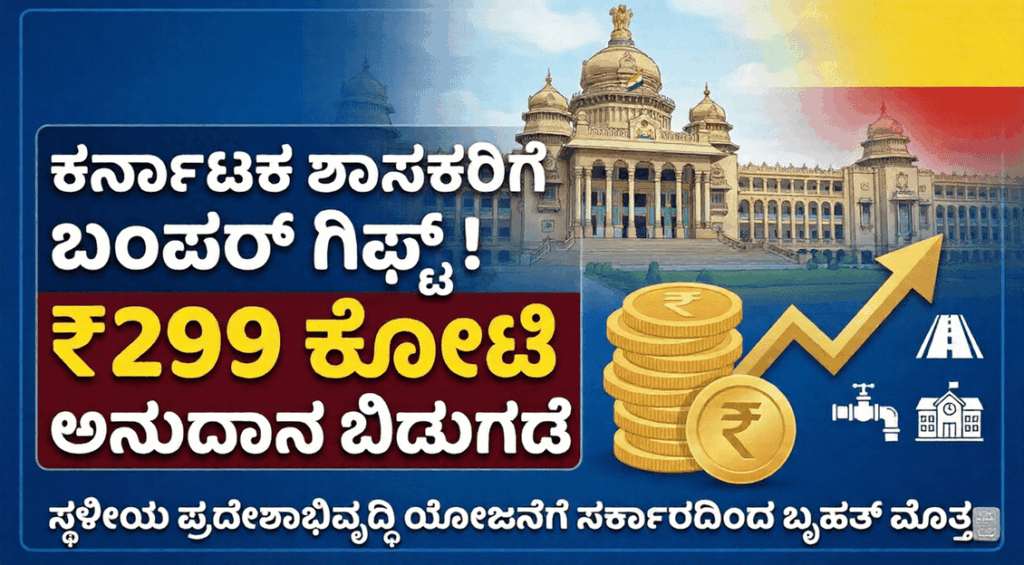 📌 ಪ್ರಮುಖ ಮುಖ್ಯಾಂಶಗಳು ◈ ಶಾಸಕರ ಪ್ರದೇಶಾಭಿವೃದ್ಧಿ ಯೋಜನೆಗೆ ₹299 ಕೋಟಿ ಭರ್ಜರಿ ಅನುದಾನ. ◈ ಪ್ರತಿ ಶಾಸಕರಿಗೆ ತಲಾ 1 ಕೋಟಿ ರೂ. ಹಣ ಬಿಡುಗಡೆ. ◈ ಜಿಲ್ಲಾ ಮಟ್ಟದ ಗುತ್ತಿಗೆ ಸಿಬ್ಬಂದಿಗಳ ವೇತನಕ್ಕೂ ಹಣ ಮಂಜೂರು. ಬೆಂಗಳೂರು: ಕರ್ನಾಟಕ ರಾಜ್ಯ ಸರ್ಕಾರವು ರಾಜ್ಯದ ಶಾಸಕರು ಮತ್ತು ವಿಧಾನ ಪರಿಷತ್ ಸದಸ್ಯರಿಗೆ ಭರ್ಜರಿ ಕೊಡುಗೆಯನ್ನು ನೀಡಿದೆ. ರಾಜ್ಯದ ಸರ್ವತೋಮುಖ ಅಭಿವೃದ್ಧಿಯನ್ನು ದೃಷ್ಟಿಯಲ್ಲಿಟ್ಟುಕೊಂಡು, ‘ಕರ್ನಾಟಕ ಶಾಸಕರ ಸ್ಥಳೀಯ ಪ್ರದೇಶಾಭಿವೃದ್ಧಿ ಯೋಜನೆ’ಯಡಿ (KMLAD) ಬರೋಬ್ಬರಿ 299 ಕೋಟಿ ರೂ. … Continue reading BIG NEWS: ರಾಜ್ಯ ಸರ್ಕಾರದಿಂದ `MLA, MLC’ ಗಳಿಗೆ ಬರೋಬ್ಬರಿ 299 ಕೋಟಿ ಅನುದಾನ ಬಿಡುಗಡೆ : ನಿಮ್ಮ ಕ್ಷೇತ್ರಕ್ಕೆಷ್ಟು.?