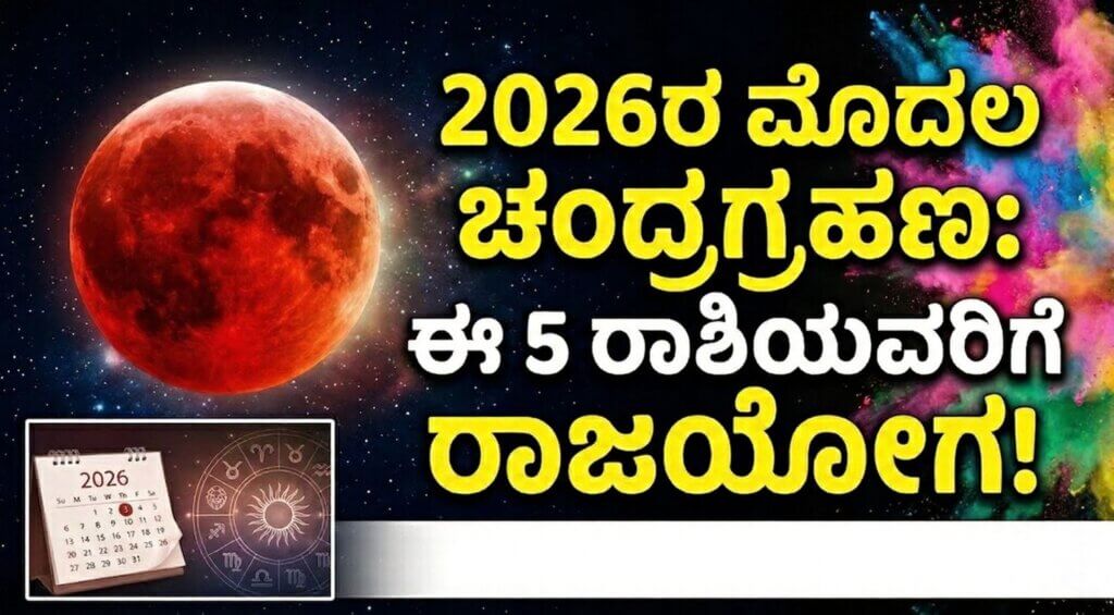 ಮುಖ್ಯಾಂಶಗಳು (Highlights) ಮಾರ್ಚ್ 3ರ ಸಂಜೆ 6:48ಕ್ಕೆ ಗ್ರಹಣ ಮೋಕ್ಷ ಕಾಲ. ಸಿಂಹ ಮತ್ತು ಕುಂಭ ರಾಶಿಯವರು ಎಚ್ಚರಿಕೆ ವಹಿಸಿ. ವೃಷಭ, ಕನ್ಯಾ, ತುಲಾ ರಾಶಿಯವರಿಗೆ ಆರ್ಥಿಕ ರಾಜಯೋಗ. 2026ರ ವರ್ಷವು ಆಧ್ಯಾತ್ಮಿಕ ಮತ್ತು ಜ್ಯೋತಿಷ್ಯ ಶಾಸ್ತ್ರದ ದೃಷ್ಟಿಯಿಂದ ಅತ್ಯಂತ ಮಹತ್ವದ್ದಾಗಿದೆ. ಈ ವರ್ಷ ಬಣ್ಣಗಳ ಹಬ್ಬವಾದ ಹೋಳಿಯ ಸಂಭ್ರಮದ ನಡುವೆಯೇ ಆಕಾಶದಲ್ಲಿ ಅದ್ಭುತ ವಿದ್ಯಮಾನವೊಂದು ಜರುಗುತ್ತಾ ಇದೆ. ಮಾರ್ಚ್ 3, 2026 ರಂದು ವರ್ಷದ ಮೊದಲ ಚಂದ್ರಗ್ರಹಣ ಈಗಅಗಲೇ ಸಂಭವಿಸುತ್ತಿದ್ದು, ಇದು ದ್ವಾದಶ ರಾಶಿಗಳ ಮೇಲೆ … Continue reading ಕುಂಭ ರಾಶಿಯ ನಕ್ಷತ್ರದಲ್ಲಿ ಚಂದ್ರಗ್ರಹಣ: ಈ ರಾಶಿಗಳ ಮೇಲೆ ಪ್ರಭಾವ ಇವರಿಗೆ ಒಲಿಯಲಿದೆ ‘ರಾಜಯೋಗ’, ಯಾರಿಗೆ ಎಚ್ಚರಿಕೆ?