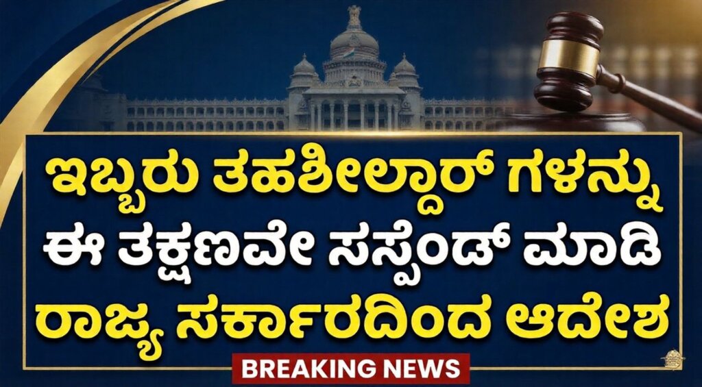 ಮುಖ್ಯಾಂಶಗಳು ಬೆಂಗಳೂರು ದಕ್ಷಿಣ ತಹಶೀಲ್ದಾರ್ಗಳ ಅಮಾನತು ಆದೇಶ. ಕೋರ್ಟ್ ಕೇಸ್ಗಳ ನಿರ್ಲಕ್ಷ್ಯಕ್ಕೆ ಸರ್ಕಾರದಿಂದ ಬಿಸಿ. ಕರ್ತವ್ಯ ಲೋಪ ಎಸಗಿದ ಇಬ್ಬರು ಅಧಿಕಾರಿಗಳು ಮನೆಗೆ. ಬೆಂಗಳೂರು: ಕಂದಾಯ ಇಲಾಖೆಯಲ್ಲಿ ಬಾಕಿ ಇರುವ ನ್ಯಾಯಾಲಯದ ಪ್ರಕರಣಗಳ ನಿರ್ವಹಣೆಯಲ್ಲಿ ಬೇಜವಾಬ್ದಾರಿತನ ತೋರಿದ ಹಿನ್ನೆಲೆಯಲ್ಲಿ, ಬೆಂಗಳೂರು ದಕ್ಷಿಣ ತಾಲ್ಲೂಕಿನ ಇಬ್ಬರು ಪ್ರಮುಖ ಮಹಿಳಾ ಅಧಿಕಾರಿಗಳನ್ನು ರಾಜ್ಯ ಸರ್ಕಾರ ತಕ್ಷಣದಿಂದ ಜಾರಿಗೆ ಬರುವಂತೆ ಅಮಾನತ್ತುಗೊಳಿಸಿ ಆದೇಶ ಹೊರಡಿಸಿದೆ. ಘಟನೆಯ ಹಿನ್ನೆಲೆ ಮತ್ತು ಕಾರಣಗಳು: ಕಂದಾಯ ಇಲಾಖೆಯು ಸರ್ಕಾರದ ಹಿತಾಸಕ್ತಿ ಕಾಪಾಡುವ ನಿಟ್ಟಿನಲ್ಲಿ ನ್ಯಾಯಾಲಯದ ಪ್ರಕರಣಗಳನ್ನು … Continue reading BREAKING: ಇಬ್ಬರು ತಹಶೀಲ್ದಾರ್ ಗಳನ್ನು ಈ ತಕ್ಷಣವೇ ಸಸ್ಪೆಂಡ್ ಮಾಡಿ ರಾಜ್ಯ ಸರ್ಕಾರದಿಂದ ಆದೇಶ..!