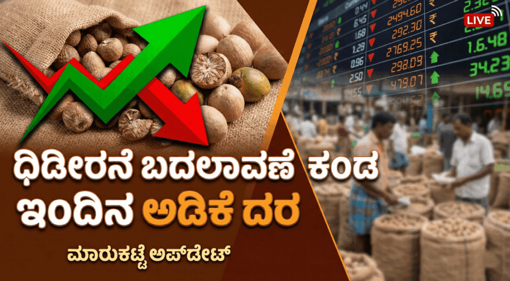 ಅಡಿಕೆ ಬೆಳೆಗಾರರೇ ಮಾರುಕಟ್ಟೆಗೆ ಹೋಗುವ ಮುನ್ನ ಇಂದಿನ ರೇಟ್ ನೋಡಿ ಧಿಡೀರನೆ ಬದಲಾವಣೆ ಕಂಡ ದರ ಎಲ್ಲೆಲ್ಲಿ ಎಷ್ಟಿದೆ.?