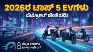 🚀 2026ರ ಇವಿ ಮುಖ್ಯಾಂಶಗಳು: ⚡ ಫಾಸ್ಟ್ ಚಾರ್ಜಿಂಗ್: ಕಡಿಮೆ ಸಮಯದಲ್ಲಿ ಪೂರ್ಣ ಚಾರ್ಜ್, ಸಮಯ ಉಳಿತಾಯ. 🛣️ ಹೆಚ್ಚಿನ ರೇಂಜ್: ದೈನಂದಿನ ಮತ್ತು ಹೈವೇ ಬಳಕೆಗೆ ಉತ್ತಮ ಮೈಲೇಜ್. 🛵 ಟಾಪ್ ಬ್ರಾಂಡ್ಸ್: ಓಲಾ, ಏಥರ್, ಟಿವಿಎಸ್, ಬಜಾಜ್ ನಿಂದ ಹೊಸ ಮಾಡೆಲ್. ಪೆಟ್ರೋಲ್ ಬಂಕ್ಗೆ ಹೋದಾಗಲೆಲ್ಲ ಮೀಟರ್ ನೋಡಿದ್ರೆ ಎದೆ ಧಗ್ ಅನ್ನುತ್ತೆ ಅಲ್ವಾ? “ಸಾಕಪ್ಪ ಈ ಪೆಟ್ರೋಲ್ ಸಹವಾಸ, ಎಲೆಕ್ಟ್ರಿಕ್ ಗಾಡಿ ತಗೊಳೋಣ” ಅಂದ್ರೆ, “ಚಾರ್ಜ್ ಖಾಲಿಯಾದ್ರೆ ದಾರೀಲಿ ನಿಂತ್ಕೋಬೇಕಾ?” ಅನ್ನೋ ಭಯ. … Continue reading ಒಂದೇ ಚಾರ್ಜ್ಗೆ ಊರು ಸುತ್ತಾಡಬಹುದು! 2026ರಲ್ಲಿ ಮಾರುಕಟ್ಟೆ ನಡುಗಿಸಲಿವೆ ಈ ಟಾಪ್ 5 ಇವಿ (EV) ಬೈಕ್ಗಳು.