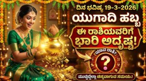 ಇಂದು ಮಾರ್ಚ್ 19, 2026, ಗುರುವಾರ. ಇಂದಿನಿಂದ ಚೈತ್ರ ನವರಾತ್ರಿ ಮತ್ತು ಹಿಂದೂ ಹೊಸ ವರ್ಷ ‘ವಿಕ್ರಮ ಸಂವತ್ಸರ 2083’ ಪ್ರಾರಂಭವಾಗುತ್ತಿದೆ. ಇಂದು ಚಂದ್ರನು ಮೀನ ರಾಶಿ ಮತ್ತು ಉತ್ತರಭಾದ್ರಪದಾ ನಕ್ಷತ್ರದಲ್ಲಿರುತ್ತಾನೆ. ಈ ದಿನವು ಅನೇಕ ರಾಶಿಯವರಿಗೆ ಆರ್ಥಿಕ ಲಾಭದ ಅವಕಾಶಗಳನ್ನು ಹೆಚ್ಚಿಸಲಿದ್ದು, ಇಷ್ಟಪಟ್ಟ ಕೆಲಸ ಮಾಡುವ ಅವಕಾಶ ಸಿಗಲಿದೆ. ಹೊಸ ವರ್ಷ ಬಂತು ಅಂದ್ರೆ, ‘ಈ ವರ್ಷವಾದರೂ ನನ್ನ ಕಷ್ಟಗಳೆಲ್ಲಾ ದೂರಾಗಿ ಒಳ್ಳೇದಾಗುತ್ತಾ?’ ಅನ್ನೋ ಕುತೂಹಲ ಪ್ರತಿಯೊಬ್ಬರಿಗೂ ಇರುತ್ತೆ ಅಲ್ವಾ? ನಾಳೆ ಚೈತ್ರ ಶುದ್ಧ ಪಾಡ್ಯ, … Continue reading ದಿನ ಭವಿಷ್ಯ 19-3-2026: ಯುಗಾದಿ ಹಬ್ಬ ಈ ರಾಶಿಯವರಿಗೆ ತರಲಿದೆ ಭಾರಿ ಅದೃಷ್ಟ, ಮುಟ್ಟಿದ್ದೆಲ್ಲಾ ಚಿನ್ನವಾಗುವ ಸಮಯ.!
