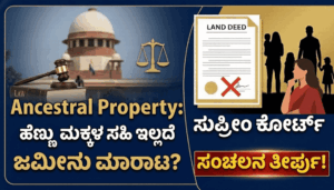 ಮುಖ್ಯಾಂಶಗಳು ✔ ಪೈತೃಕ ಆಸ್ತಿಯಲ್ಲಿ ಮಗಳಿಗೂ ಮಗನಷ್ಟೇ ಸಮಾನ ಹಕ್ಕಿದೆ. ✔ ಸಹಿ ಇಲ್ಲದೆ ಮಾಡಿದ ಮಾರಾಟ ಕಾನೂನುಬದ್ಧವಾಗಿ ಮಾನ್ಯವಲ್ಲ. ✔ ಆಸ್ತಿ ಮಾರಾಟವಾದ 12 ವರ್ಷದೊಳಗೆ ಕೇಸ್ ಹಾಕಲು ಅವಕಾಶವಿದೆ. ಕುಟುಂಬದ ಆಸ್ತಿ ಅಥವಾ ಜಮೀನು ಮಾರಾಟ ಮಾಡುವಾಗ ಸಾಮಾನ್ಯವಾಗಿ ಗಂಡು ಮಕ್ಕಳ ಒಪ್ಪಿಗೆ ಪಡೆಯಲಾಗುತ್ತದೆ. ಆದರೆ, ಮನೆಯ ಹೆಣ್ಣು ಮಗಳ ಸಹಿ ಅಥವಾ ಅನುಮತಿ ಇಲ್ಲದೆ ಆಸ್ತಿ ಮಾರಾಟ ಮಾಡಿದರೆ ಆ ವ್ಯವಹಾರ ಕಾನೂನುಬದ್ಧವಾಗುತ್ತದೆಯೇ? ಈ ಪ್ರಶ್ನೆಗೆ ಇತ್ತೀಚಿನ ವರ್ಷಗಳಲ್ಲಿ ಸುಪ್ರೀಂ ಕೋರ್ಟ್ ನೀಡಿರುವ … Continue reading ಪಿತೃಾರ್ಜಿತ ಆಸ್ತಿಯಲ್ಲಿ ಮಗಳ ಸಹಿ ಇಲ್ಲದೆ ಜಮೀನು ಮಾರಾಟ ಮಾಡಿದರೆ ಏನಾಗುತ್ತದೆ? ಸುಪ್ರೀಂ ಕೋರ್ಟ್ ನೀಡಿದ ಸಂಚಲನ ತೀರ್ಪು!