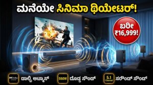 ಒಂದೇ ನೋಟದಲ್ಲಿ ಪ್ರಮುಖ ಮಾಹಿತಿ: ಬೊಂಬಾಟ್ ಸೌಂಡ್: 550W ಪವರ್, 5.1 ಚಾನೆಲ್ನ ಅದ್ಭುತ ಅನುಭವ. ಆಧುನಿಕ ತಂತ್ರಜ್ಞಾನ: ಡಾಲ್ಬಿ ಅಟ್ಮಾಸ್ ಮತ್ತು ವೈರ್ಲೆಸ್ ಸಬ್ವೂಫರ್ ಸೌಲಭ್ಯ. ಕೈಗೆಟುಕುವ ಬೆಲೆ: ಕೇವಲ ₹16,999 ಕ್ಕೆ ಅಮೆಜಾನ್ನಲ್ಲಿ ಲಭ್ಯ. ಟಿವಿಯಲ್ಲಿ ಹೊಸ ಸಿನಿಮಾ ಅಥವಾ ವೆಬ್ ಸೀರೀಸ್ ನೋಡುವಾಗ ಡೈಲಾಗ್ಸ್ ಸರಿಯಾಗಿ ಕೇಳಿಸುತ್ತಿಲ್ಲವೇ? ಅಥವಾ ಗೇಮ್ ಆಡುವಾಗ ಆ ಥ್ರಿಲ್ಲಿಂಗ್ ಸೌಂಡ್ ಮಿಸ್ ಆಗುತ್ತಿದೆಯೇ? ಹಾಗಾದರೆ ನಿಮಗೊಂದು ಭರ್ಜರಿ ಸಿಹಿಸುದ್ದಿ. ಈಗ ಮನೆಯಲ್ಲೇ ಕುಳಿತು ಸಿನಿಮಾ ಥಿಯೇಟರ್ನಂತಹ ಆಡಿಯೋ … Continue reading Zebronics Zeb Juke Bar 9710C ಬಿಡುಗಡೆ: ಬಜೆಟ್ ಬೆಲೆಯಲ್ಲಿ 550W ಡಾಲ್ಬಿ ಅಟ್ಮಾಸ್ ಸೌಂಡ್ಬಾರ್ ಫೀಚರ್ಸ್ ಇಲ್ಲಿದೆ.
